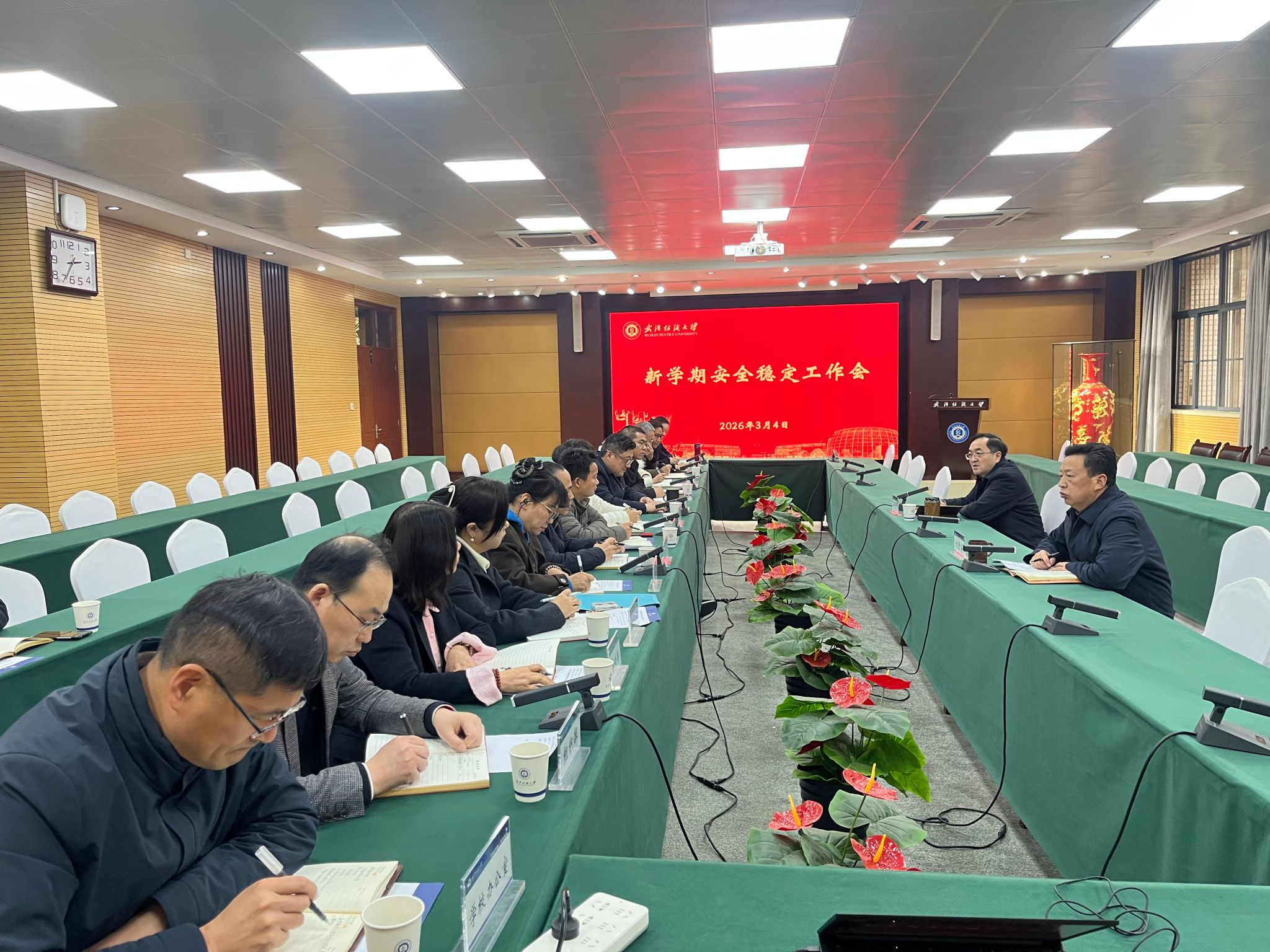 3月4日下午,学校在阳光校区115会议室召开新学期安全稳定工作专题会议,深入学习贯彻省委、省政府、省教育厅关于维护高校安全稳定的系列重要指示精神,分析当前形势,部署新学期开学阶段学校安全稳定各项工作。校长傅欣出席会议并作工作部署,校党委常委、纪委书记程碧海主持会议。