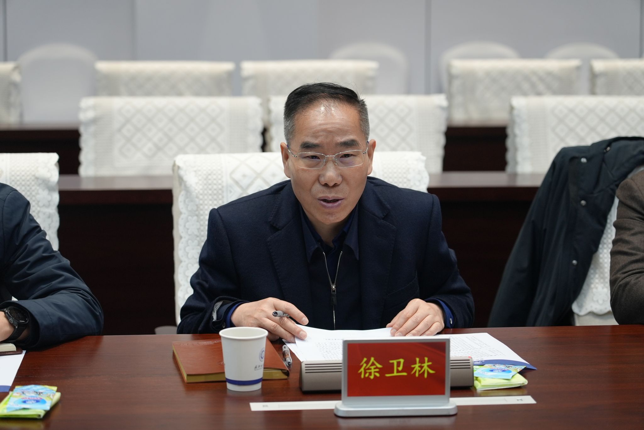 座谈会上,徐卫林院士对石长青一行的到访表示热烈欢迎,代表学校对新疆理工职业大学的办学定位和发展成效给予高度评价,并全面介绍了学校的办学规模、学科发展、师资引育、人才培养、科技创新和社会服务等方面实践举措。他指出,两校开展深度合作,既有利于新疆理工职业大学更好地发挥新疆资源禀赋优势,也有利于武汉纺织大学更好地服务国家纺织强国战略,更深度融入新疆棉花全产业链升级与现代纺织产业体系构建。他希望未来双方以纺织学科为纽带,聚焦师资共建、科研协同、实习实训、就业联动四大维度,进一步细化合作举措、健全长效机制,共同书写两校协同发展、合作共赢的崭新篇章。