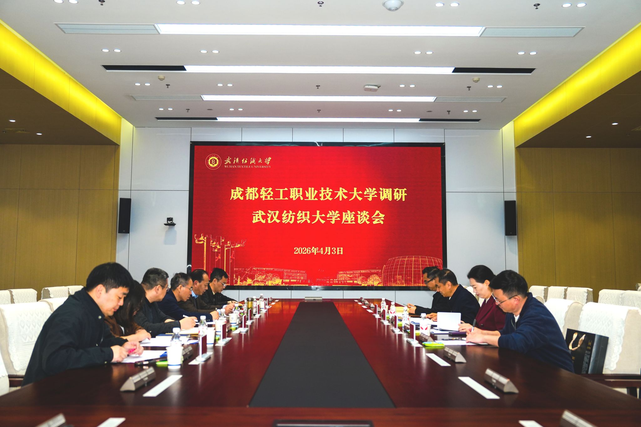 会上,成都轻工职业技术大学党委常委、副校长刘莉,教务处、纺织学院负责人与我校学校办公室、本科生院、纺织学院等相关单位负责人围绕师资队伍建设、实习实训、学科竞赛等议题进行了深入交流。